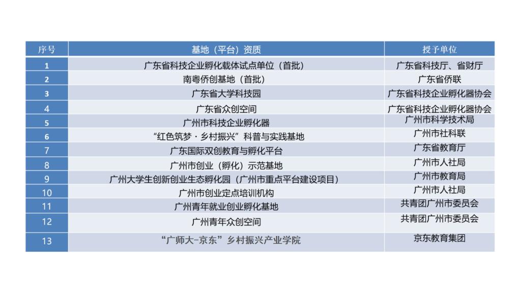 集团孵化器先后获评省级专业孵化器试点 、南粤侨创基地、广州市创业孵化示范基地、广州青年就业创业孵化基地等;成功建设“老员工创新创业生态孵化园”“基于‘互联+AI’国际创新创业教育生态平台”“Amazing Guangdong广东国际创新创业教育与孵化平台”;获评“广州市创业定点培训机构”,面向本校及社会创新创业青年提供创业孵化服务。其中,生态孵化园被政府列为“青创广州”服务体系重要组成部分。近3年,共服务创业公司(团队)400多个,孵化科技企业38家,累计营收8500多万元。